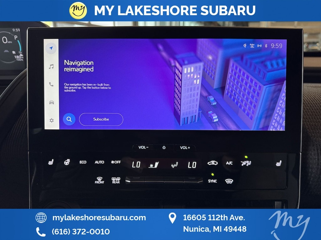 My Lakeshore Subaru is your #1 choice in Michigan to get the BEST PRICE on used vehicles and BEST value for your trade. The My Lakeshore Subaru team is ready to provide you with a world-class experience, ensuring that you find the perfect vehicle that fits all your needs. Every vehicle has been through a full safety inspection completed by certified technicians and fully detailed. We sell many makes and models, Certified Pre-owned Subaruâs and Pre-owned Vehicles with years from 2025-2024-2023-2022-2021-2020-2019-2018-2017-2016-2015-2014-2013-2012-2011-2010-2009-2008-2007 and all makes Audi, BMW, Chevrolet, Toyota, Volkswagen, Kia, Hyundai, Mazda, Mercedes, Dodge, Chrysler, Jeep, Ram, Lincoln, Honda, Subaru, and many models like Crosstrek, Outback, Forester, Accent, Legacy, WRX, BRZ, Solterra, and more. Take advantage of our VIP experience by calling 231-867-6957 to schedule a test drive. Read our customer reviews and view our entire selection of preowned vehicles at www.mylakeshoresubaru.com, or stop by today, located at 16605 112th Ave, Nunica, MI 49448. Recent Arrival! 111/93 City/Highway MPG