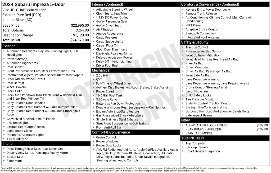 AWD, Pure Red, *ALL WHEEL DRIVE*, *APPLE CARPLAY & ANDROID AUTO*, *BACKUP CAMERA*, *EYESIGHT Driver Assist*, *LANE DEPARTURE WARNING*, *OIL CHANGES for LIFE*. Certified. Pure Red 2024 Subaru Impreza AWD CVT Lineartronic 2.0L DOHC