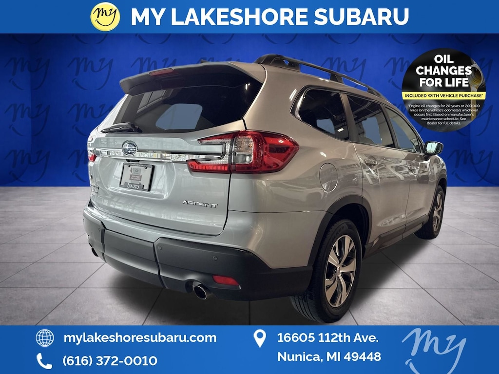 Ascent Premium, Ice Silver Metallic, *ALL WHEEL DRIVE*, *APPLE CARPLAY & ANDROID AUTO*, *BACKUP CAMERA*, *BLIND SPOT MONITORING*, *EYESIGHT Driver Assist*, *HEATED SEATS*, *LANE DEPARTURE WARNING*, *OIL CHANGES for LIFE*. Certified. Ice Silver Metallic 2025 Subaru Ascent Premium AWD Lineartronic CVT 2.4L 4-Cylinder DOHC 16V