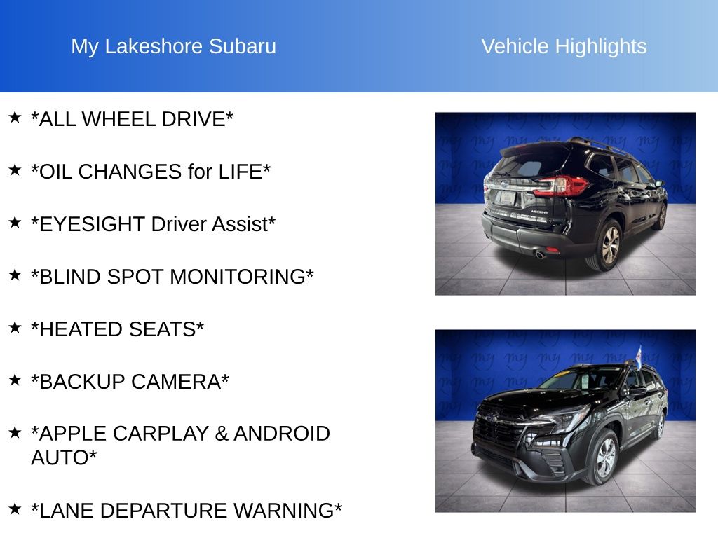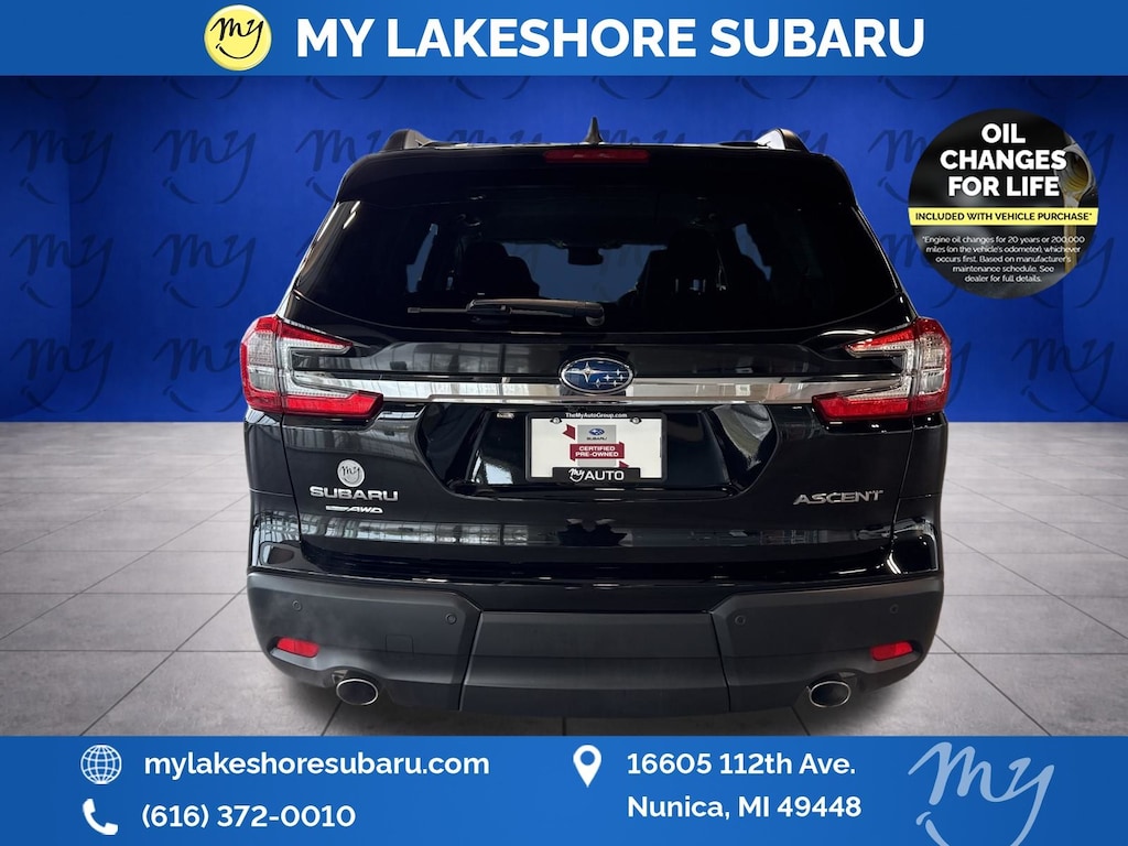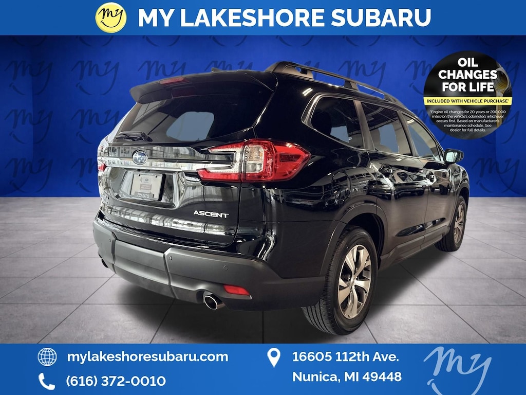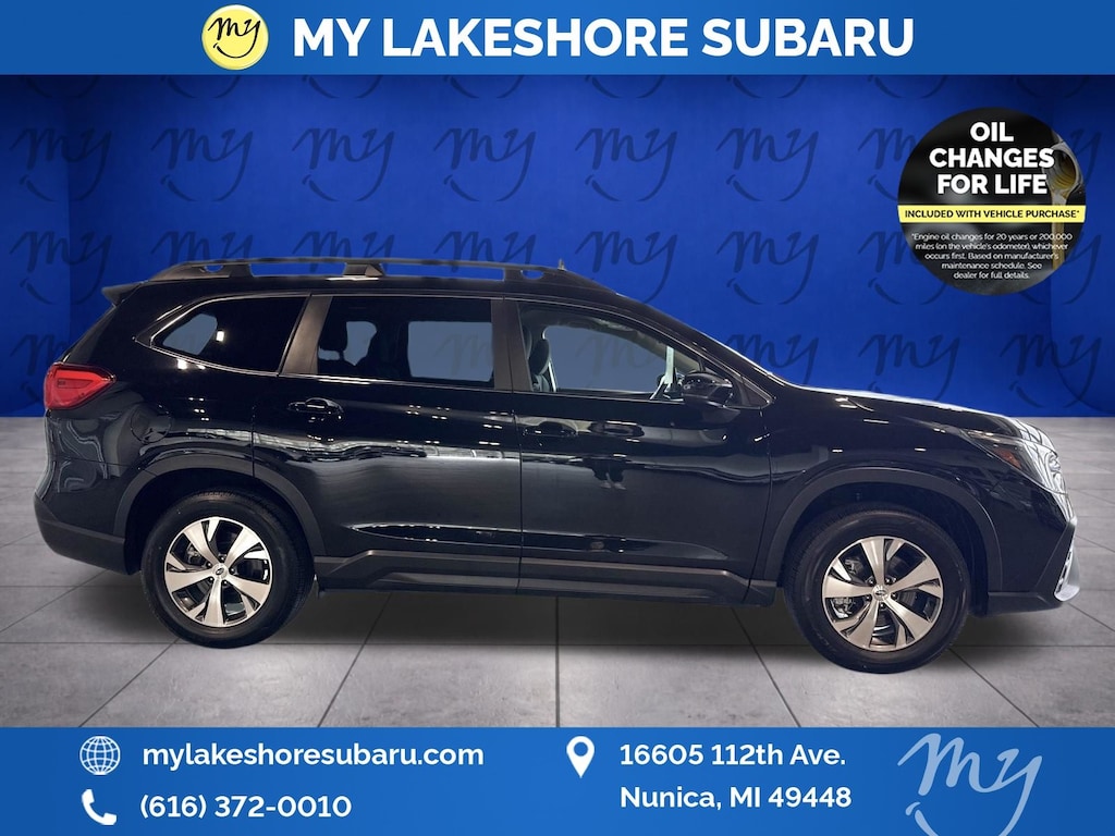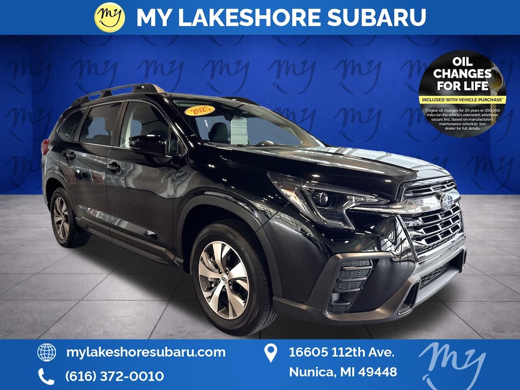 Ascent Premium, Crystal Black Silica, *ALL WHEEL DRIVE*, *APPLE CARPLAY & ANDROID AUTO*, *BACKUP CAMERA*, *BLIND SPOT MONITORING*, *EYESIGHT Driver Assist*, *HEATED SEATS*, *LANE DEPARTURE WARNING*, *OIL CHANGES for LIFE*. Certified. Crystal Black Silica 2025 Subaru Ascent Premium AWD Lineartronic CVT 2.4L 4-Cylinder DOHC 16V