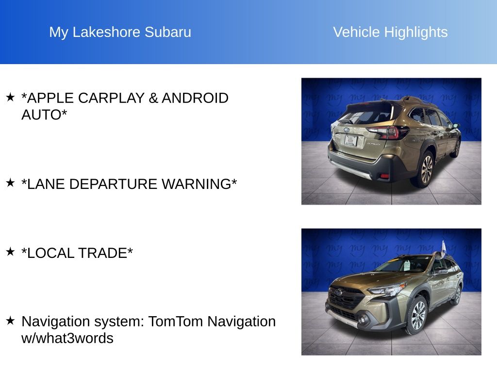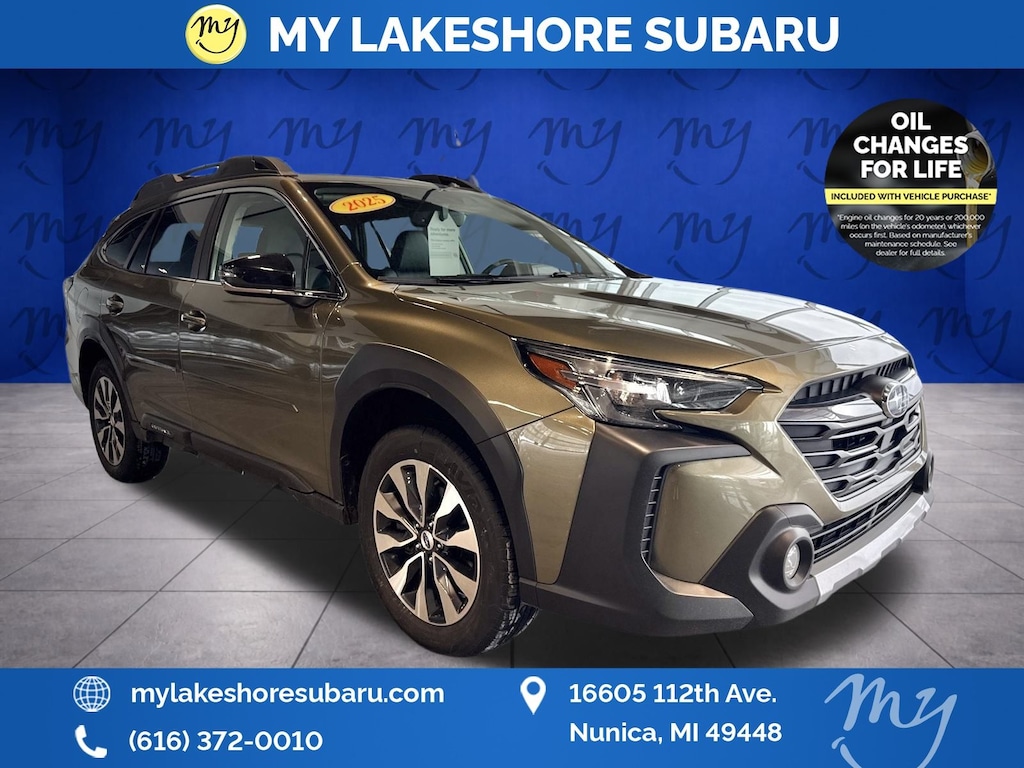 Outback Limited, Autumn Green Metallic, *ALL WHEEL DRIVE*, *APPLE CARPLAY & ANDROID AUTO*, *BLIND SPOT ALERT*, *EYESIGHT Driver Assist*, *HEATED REAR Seats*, *LANE DEPARTURE WARNING*, *LEATHER HEATED POWER SEATS*, *LOCAL TRADE*, *MOONROOF*, *OIL CHANGES for LIFE*, *REARVIEW CAMERA*, Navigation system: TomTom Navigation w/what3words. Certified. Autumn Green Metallic 2025 Subaru Outback Limited AWD CVT Lineartronic 2.5L 4-Cylinder DOHC 16V