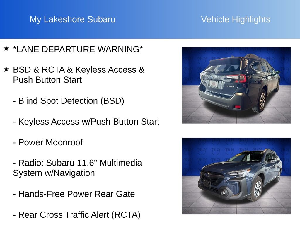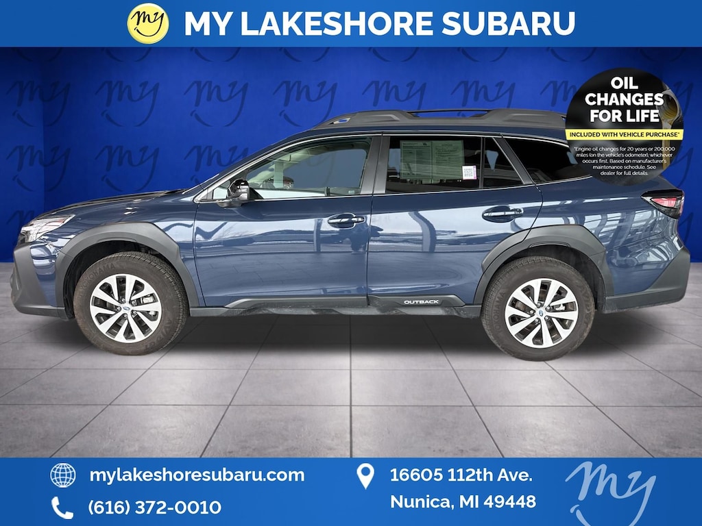 Outback Premium, Cosmic Blue Pearl, *ALL WHEEL DRIVE*, *APPLE CARPLAY & ANDROID AUTO*, *BACKUP CAMERA*, *BLIND SPOT MONITORING*, *EYESIGHT Driver Assist*, *HEATED SEATS*, *LANE DEPARTURE WARNING*, *MOONROOF*, *OIL CHANGES for LIFE*, Blind Spot Detection (BSD), BSD & RCTA & Keyless Access & Push Button Start, Hands-Free Power Rear Gate, Keyless Access w/Push Button Start, Power Moonroof, Radio: Subaru 11.6" Multimedia System w/Navigation, Rear Cross Traffic Alert (RCTA). Certified. Cosmic Blue Pearl 2025 Subaru Outback Premium AWD CVT Lineartronic 2.5L 4-Cylinder DOHC 16V