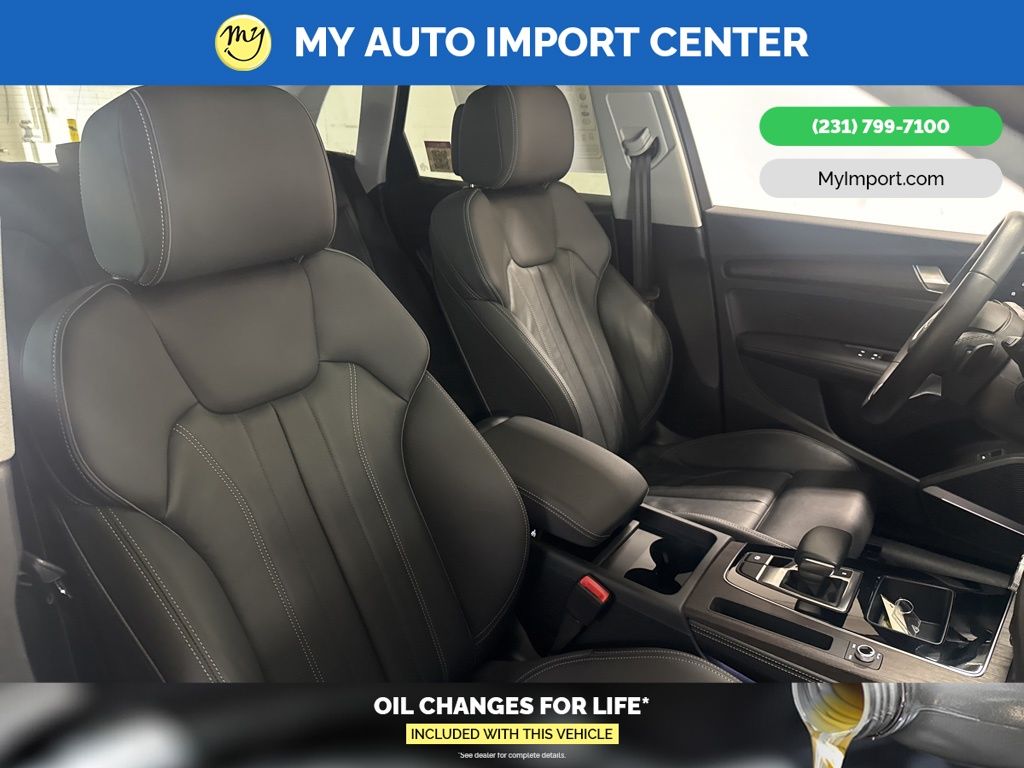 The exterior of this Q5 is finished in a sleek Gray color, complemented by the bold S line styling cues and 19" 5-Double-Arm Design Bi-Color Finish wheels. The panoramic sunroof and power liftgate add to the vehicle's versatility and convenience, while the Audi Advanced Key and Auto-Dimming Power Folding Exterior Mirrors provide added functionality and luxury.