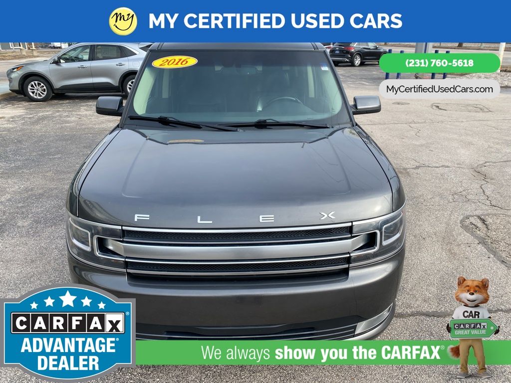 *LOCAL TRADE* ***2016 FORD FLEX LIMITED AWD***, *SUPER BUY* *REMOTE START* *LEATHER HEATED POWER SEATS* *MEMORY SEAT*, *NAVIGATION SYSTEM*, *PANORAMIC MOONROOF*, *PREMIUM SOUND* **ADVANCE TRAC WITH RSC**, *BACKUP SENSORS*, *HANDSFREE BLUETOOTH* , *REARVIEW CAMERA*, 12 Speakers, 19" Painted Aluminum Wheels, Equipment Group 300A, Exterior Parking Camera Rear, Memory seat, Multi-Panel Vista Roof, Navigation System, Pedal memory, Power driver seat, Power Liftgate, Premium audio system: Sony, Rain sensing wipers, Rear Parking Sensors, SYNC 3. MY Certified Used Cars of Muskegon is your #1 choice in Michigan to get the BEST PRICE on used vehicles and BEST value for your trade. The MY Certified Used Cars team is ready to provide you with a world-class experience, ensuring that you find the perfect vehicle that fits all your needs. Every vehicle has been through a full safety inspection completed by certified technicians and fully detailed. We sell many makes and models, Pre-Owned Vehicles with years from 2025-2024-2023-2022-2021-2020-2019-2018-2017-2016-2015-2014-2013-2012-2011-2010-2009-2008-2007 and all makes Audi, BMW, Chevrolet, Toyota, Volkswagen, Kia, Hyundai, Mercedes, Dodge, Chrysler, Jeep, Ram, Lincoln, Honda, Subaru, and many models like Bronco, Bronco Sport, Edge, Escapes, Expedition, Explorer, Fusions, Focus, Flex, F-150 Series, F-250, F-350, Super Duty Diesel Trucks, Maverick, Mustang MACH-E, Mustang, Ranger, Transit, Wrangler, Grand Cherokee, Grand Cherokee L, Wagoneer, Gladiator, Grand Caravan, RAM, RAM HEMI, and more. Take advantage of our VIP experience by calling 231-760-5618 to schedule a test drive. Read our customer reviews at www.mycertifiedusedcars.com/testimonials or view our entire selection of preowned vehicles at www.mycertifiedusedcars.com, or stop by today, located at 3692 Airline Rd. Muskegon, MI 49444. Magnetic 2016 Ford Flex Limited AWD 6-Speed Automatic with Select-Shift 3.5L V6 Ti-VCT