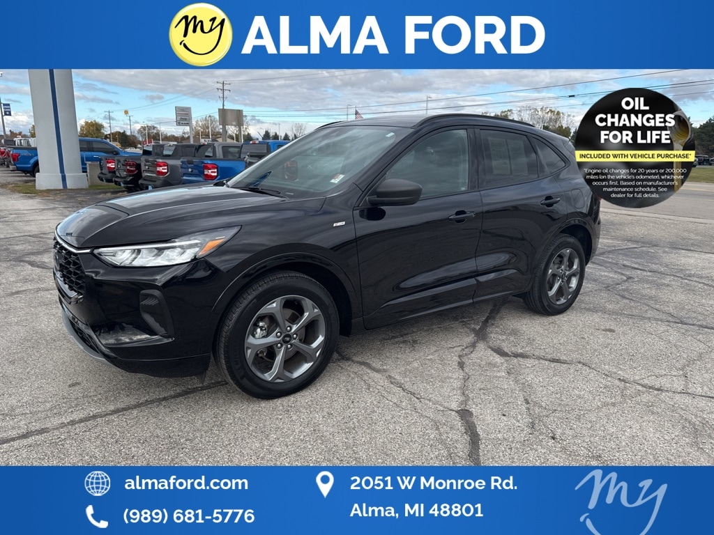 Escape ST-Line, 1.5L EcoBoost, AWD, Agate Black Metallic, Ebony w/Heated Vinyl/Cloth Front Sport Contour Bucket Seats, *ACCIDENT FREE*, *ADAPTIVE CRUISE*, *ALL WHEEL DRIVE*, *APPLE CARPLAY & ANDROID AUTO*, *BLIND SPOT MONITORING SYSTEM*, *BLUETOOTH*, *CLEAN CARFAX 1-OWNER*, *COLD WEATHER Package*, *FULLY SERVICED*, *HEATED SEATS*, *HEATED STEERING WHEEL*, *JUST ARRIVED*, *LANE DEPARTURE WARNING*, *NAVIGATION*, *OIL CHANGES for LIFE*, *REAR POWER LIFTGATE*, *REMOTE START*, *SUPER BUY*, *VERY CLEAN*, Connected Built-In Navigation, Equipment Group 300A, Ford Co-Pilot360 Assist+, Intelligent Adaptive Cruise Control w/Stop-and-Go, Rear Parking Sensor, Rear-View Camera, Speed Sign Recognition, SYNC 4 w/Enhanced Voice Recognition, Tech Pack #1, Wheels: 18" Rock Metallic Painted Aluminum. 2023 Ford Escape ST-Line Agate Black Metallic YOUR BEST PRICE on ANY NEW FORD is at Alma Ford. Get the MOST MONEY for your TRADE and BEST PRICE GUARANTEE on ANY NEW FORD! Alma Ford is your #1 choice in Michigan to get the BEST PRICE on any NEW Ford and HOME of the OIL Changes for LIFE*. The Alma Ford team is ready to provide you with a world-class experience, ensuring that you find the perfect vehicle that fits all your needs. Every vehicle has been through a 172 point safety inspection completed by a certified technicians and fully detailed. We sell many makes and models, Pre-Owned Ford Vehicles 2025-2024-2023-2022-2021-2020-2019-2018-2017-2016-2015-2014-2013-2012-2011-2010 Ford Bronco, Bronco Sport, Edge, Escapes, Expedition, Explorer, Fusions, Focus, Flex, F-150 Series, F-250, F-350, Super Duty Diesel Trucks, Maverick, Mustang MACH-E, Mustang, Ranger, Transit, and more For sale. Take advantage of our VIP experience by calling 989-699-5260 to schedule a test drive. Read our customer reviews at www.almaford.com/customer-testimonials or view our entire selection of new and preowned vehicles at www.almaford.com, or stop by today, located at 2051 W Monroe, Alma, MI 48801. The title is in transit and this vehicle is not available for sale. 2023 Ford Escape ST-Line AWD 8-Speed Automatic 1.5L EcoBoost