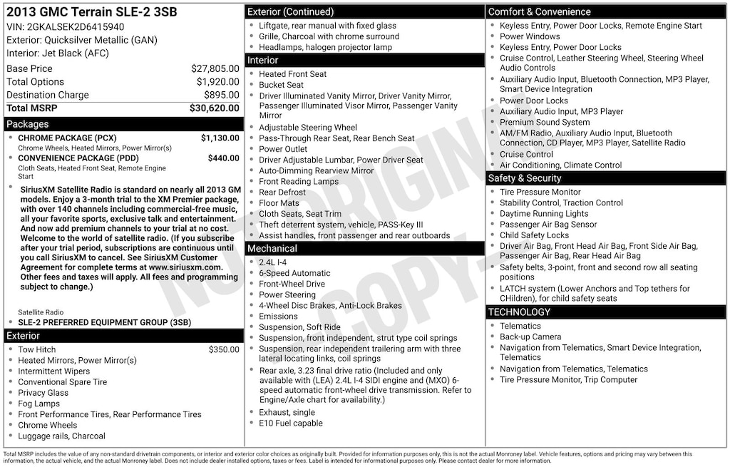 Terrain SLE-2, Quicksilver Metallic, *HEATED SEATS*, *LOCAL TRADE*, Chrome Package, Convenience Package, Heated Driver & Front Passenger Seats, Remote Vehicle Start. Quicksilver Metallic 2013 GMC Terrain SLE-2 FWD 6-Speed Automatic 2.4L 4-Cylinder SIDI DOHC VVT