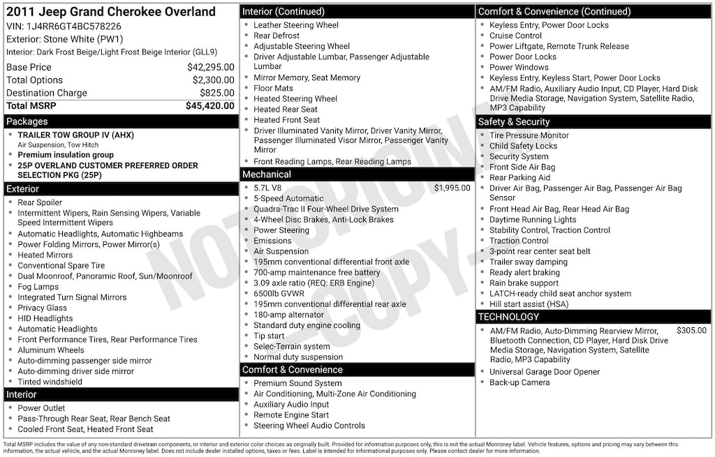5.7L V8 Multi Displacement VVT, 4WD. Stone White Clearcoat 2011 Jeep Grand Cherokee Overland 4WD 5-Speed Automatic 5.7L V8 Multi Displacement VVT