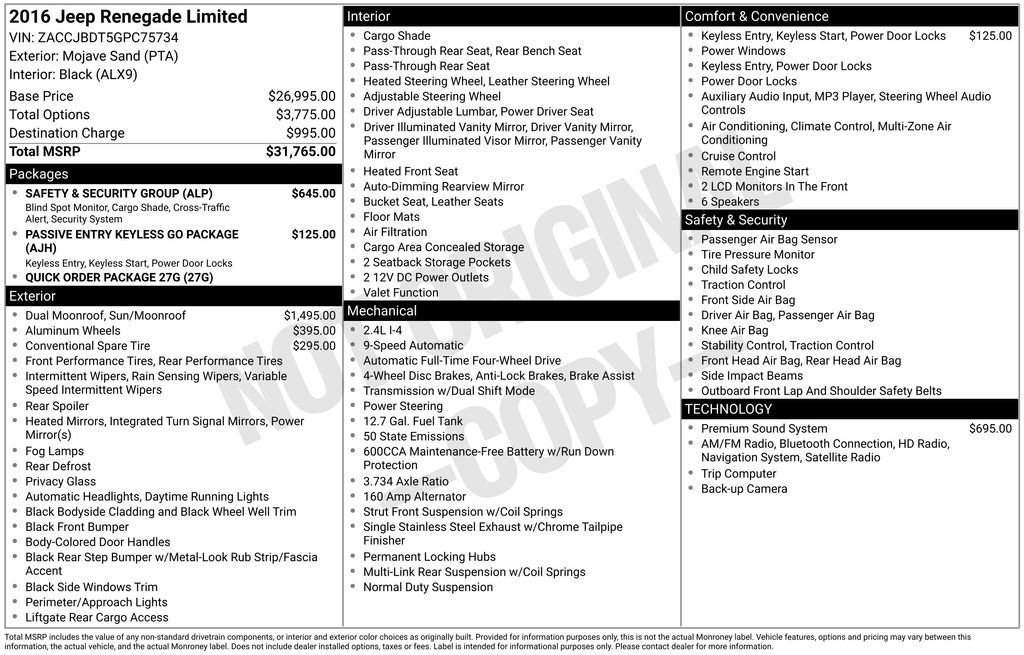 Mojave Sand 2016 Jeep Renegade Limited 2.4L I4 MultiAir 4WD