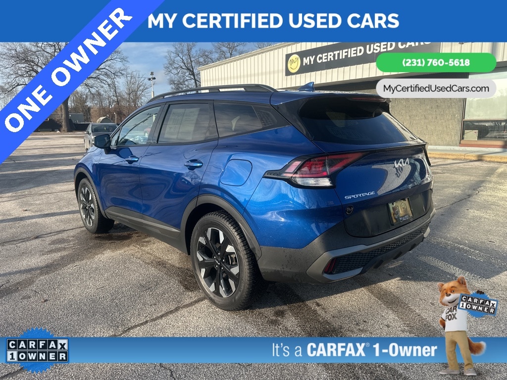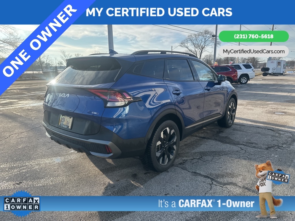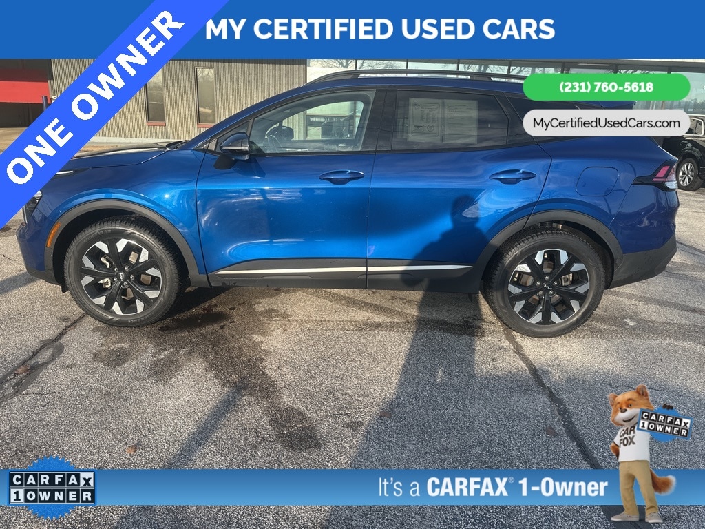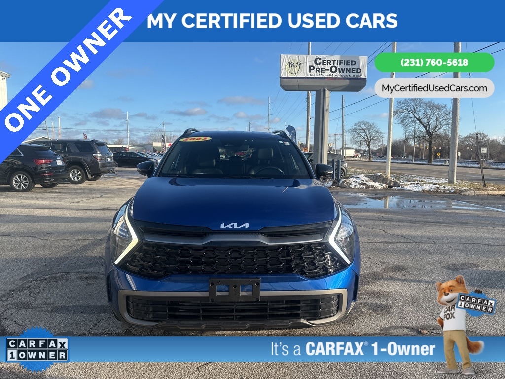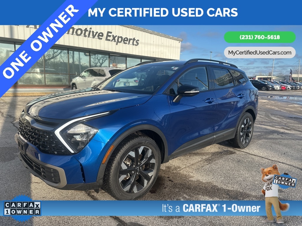 ***ONE OWNER*** *FULLY SERVICED* ***2023 KIA SPORTAGE X-LINE AWD*** *SUPER BUY*, *VERY CLEAN* **REMOTE START** *LEATHER HEATED POWER SEATS* **WIRELESS PHONE CHARGER**, *BACKUP SENSORS*, *BLIND SPOT MONITORING SYSTEM*, *HANDSFREE BLUETOOTH*, *LANE DEPARTURE WARNING*, *NAVIGATION SYSTEM*, *REARVIEW CAMERA*, *ADAPTIVE CRUISE*, *APPLE CARPLAY & ANDROID AUTO* LED Interior Lighting, Navigation System, Panoramic Sunroof, Smart Power Liftgate, X-Line Premium Package. MY Certified Used Cars of Muskegon is your #1 choice in Michigan to get the BEST PRICE on used vehicles and BEST value for your trade. The MY Certified Used Cars team is ready to provide you with a world-class experience, ensuring that you find the perfect vehicle that fits all your needs. Every vehicle has been through a full safety inspection completed by certified technicians and fully detailed. We sell many makes and models, Pre-Owned Vehicles with years from 2025-2024-2023-2022-2021-2020-2019-2018-2017-2016-2015-2014-2013-2012-2011-2010-2009-2008-2007 and all makes Audi, BMW, Chevrolet, Toyota, Volkswagen, Kia, Hyundai, Mercedes, Dodge, Chrysler, Jeep, Ram, Lincoln, Honda, Subaru, and many models like Bronco, Bronco Sport, Edge, Escapes, Expedition, Explorer, Fusions, Focus, Flex, F-150 Series, F-250, F-350, Super Duty Diesel Trucks, Maverick, Mustang MACH-E, Mustang, Ranger, Transit, Wrangler, Grand Cherokee, Grand Cherokee L, Wagoneer, Gladiator, Grand Caravan, RAM, RAM HEMI, and more. Take advantage of our VIP experience by calling 231-760-5618 to schedule a test drive. Read our customer reviews at www.mycertifiedusedcars.com/testimonials or view our entire selection of preowned vehicles at www.mycertifiedusedcars.com, or stop by today, located at 3692 Airline Rd. Muskegon, MI 49444. CARFAX One-Owner. Sapphire Blue 2023 Kia Sportage X-Line AWD 8-Speed Automatic I4 Clean CARFAX.
