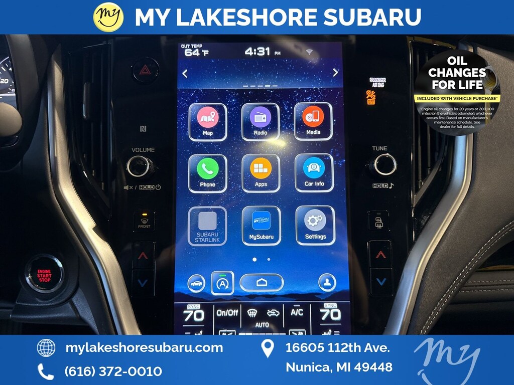 My Lakeshore Subaru is your #1 choice in Michigan to get the BEST PRICE on used vehicles and BEST value for your trade. The My Lakeshore Subaru team is ready to provide you with a world-class experience, ensuring that you find the perfect vehicle that fits all your needs. Every vehicle has been through a full safety inspection completed by certified technicians and fully detailed. We sell many makes and models, Certified Pre-owned Subaruâs and Pre-owned Vehicles with years from 2025-2024-2023-2022-2021-2020-2019-2018-2017-2016-2015-2014-2013-2012-2011-2010-2009-2008-2007 and all makes Audi, BMW, Chevrolet, Toyota, Volkswagen, Kia, Hyundai, Mazda, Mercedes, Dodge, Chrysler, Jeep, Ram, Lincoln, Honda, Subaru, and many models like Crosstrek, Outback, Forester, Accent, Legacy, WRX, BRZ, Solterra, and more. Take advantage of our VIP experience by calling 231-867-6957 to schedule a test drive. Read our customer reviews and view our entire selection of preowned vehicles at www.mylakeshoresubaru.com, or stop by today, located at 16605 112th Ave, Nunica, MI 49448. 23/30 City/Highway MPG