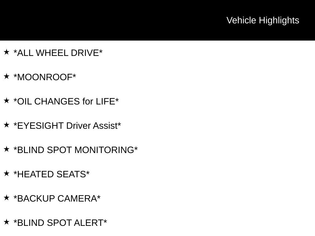 My Lakeshore Subaru is proud to service customer's saving you time & money on any Pre-owned vehicle! See dealer for complete details, dealer is not responsible for pricing errors, all prices, plus tax, title, plate, and $280 documentation fees. Serving Nunica and all of our surrounding cities like Norton Shores, Grandville, Greenville, Grand Rapids, Lansing, Kalamazoo, Walker, Comstock Park, Grand Haven, Holland, Wyoming, North Muskegon, Fruitport, Hudsonville, Spring Lake, Wolf Lake, Rockford, Zeeland, Kent City, Sparta, Coopersville, Allendale, Whitehall, and anywhere in the great state of Michigan. Buy from My Lakeshore Subaru in Nunica, MI and you will receive a best-in-class experience. Some of our used vehicles may be subject to unrepaired safety recalls. Check for a vehicle's unrepaired recalls by VIN at http://vinrcl.safercar.gov/vin/.