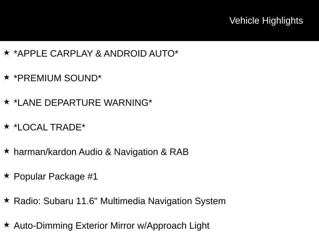My Lakeshore Subaru is your #1 choice in Michigan to get the BEST PRICE on used vehicles and BEST value for your trade. The My Lakeshore Subaru team is ready to provide you with a world-class experience, ensuring that you find the perfect vehicle that fits all your needs. Every vehicle has been through a full safety inspection completed by certified technicians and fully detailed. We sell many makes and models, Certified Pre-owned Subaruâs and Pre-owned Vehicles with years from 2025-2024-2023-2022-2021-2020-2019-2018-2017-2016-2015-2014-2013-2012-2011-2010-2009-2008-2007 and all makes Audi, BMW, Chevrolet, Toyota, Volkswagen, Kia, Hyundai, Mazda, Mercedes, Dodge, Chrysler, Jeep, Ram, Lincoln, Honda, Subaru, and many models like Crosstrek, Outback, Forester, Accent, Legacy, WRX, BRZ, Solterra, and more. Take advantage of our VIP experience by calling 231-867-6957 to schedule a test drive. Read our customer reviews and view our entire selection of preowned vehicles at www.mylakeshoresubaru.com, or stop by today, located at 16605 112th Ave, Nunica, MI 49448. Recent Arrival! 26/33 City/Highway MPG