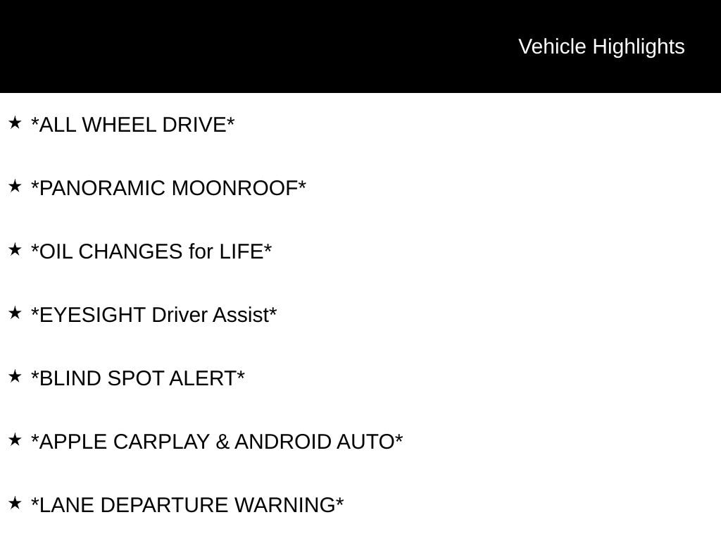 My Lakeshore Subaru is your #1 choice in Michigan to get the BEST PRICE on used vehicles and BEST value for your trade. The My Lakeshore Subaru team is ready to provide you with a world-class experience, ensuring that you find the perfect vehicle that fits all your needs. Every vehicle has been through a full safety inspection completed by certified technicians and fully detailed. We sell many makes and models, Certified Pre-owned Subaruâs and Pre-owned Vehicles with years from 2025-2024-2023-2022-2021-2020-2019-2018-2017-2016-2015-2014-2013-2012-2011-2010-2009-2008-2007 and all makes Audi, BMW, Chevrolet, Toyota, Volkswagen, Kia, Hyundai, Mazda, Mercedes, Dodge, Chrysler, Jeep, Ram, Lincoln, Honda, Subaru, and many models like Crosstrek, Outback, Forester, Accent, Legacy, WRX, BRZ, Solterra, and more. Take advantage of our VIP experience by calling 231-867-6957 to schedule a test drive. Read our customer reviews and view our entire selection of preowned vehicles at www.mylakeshoresubaru.com, or stop by today, located at 16605 112th Ave, Nunica, MI 49448. Recent Arrival! 26/33 City/Highway MPG