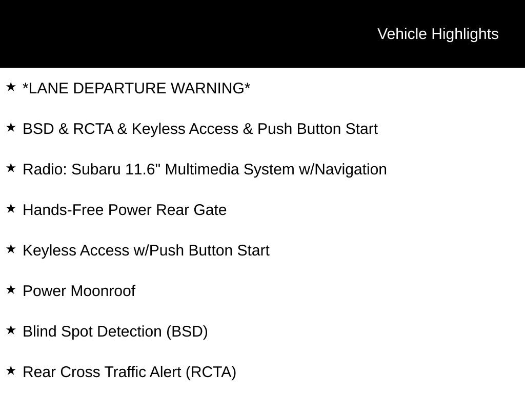 My Lakeshore Subaru is your #1 choice in Michigan to get the BEST PRICE on used vehicles and BEST value for your trade. The My Lakeshore Subaru team is ready to provide you with a world-class experience, ensuring that you find the perfect vehicle that fits all your needs. Every vehicle has been through a full safety inspection completed by certified technicians and fully detailed. We sell many makes and models, Certified Pre-owned Subaruâs and Pre-owned Vehicles with years from 2025-2024-2023-2022-2021-2020-2019-2018-2017-2016-2015-2014-2013-2012-2011-2010-2009-2008-2007 and all makes Audi, BMW, Chevrolet, Toyota, Volkswagen, Kia, Hyundai, Mazda, Mercedes, Dodge, Chrysler, Jeep, Ram, Lincoln, Honda, Subaru, and many models like Crosstrek, Outback, Forester, Accent, Legacy, WRX, BRZ, Solterra, and more. Take advantage of our VIP experience by calling 231-867-6957 to schedule a test drive. Read our customer reviews and view our entire selection of preowned vehicles at www.mylakeshoresubaru.com, or stop by today, located at 16605 112th Ave, Nunica, MI 49448. Recent Arrival! 26/32 City/Highway MPG