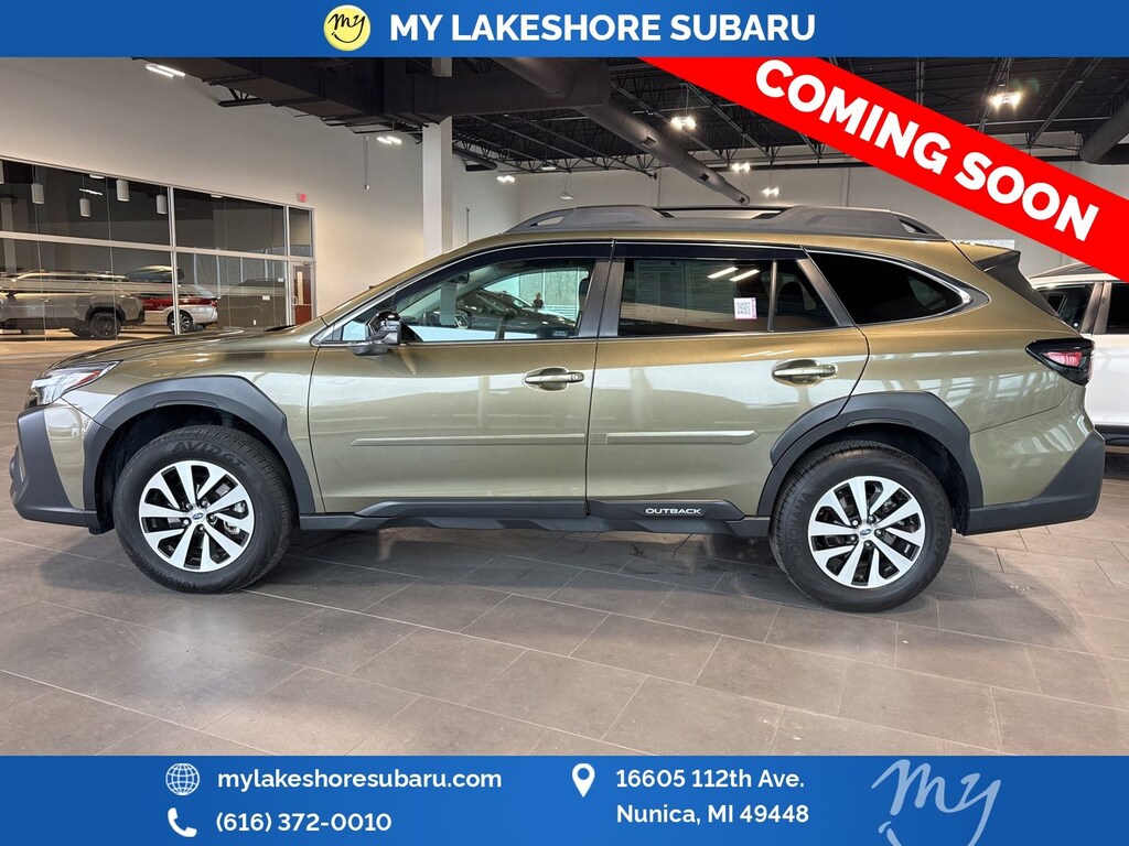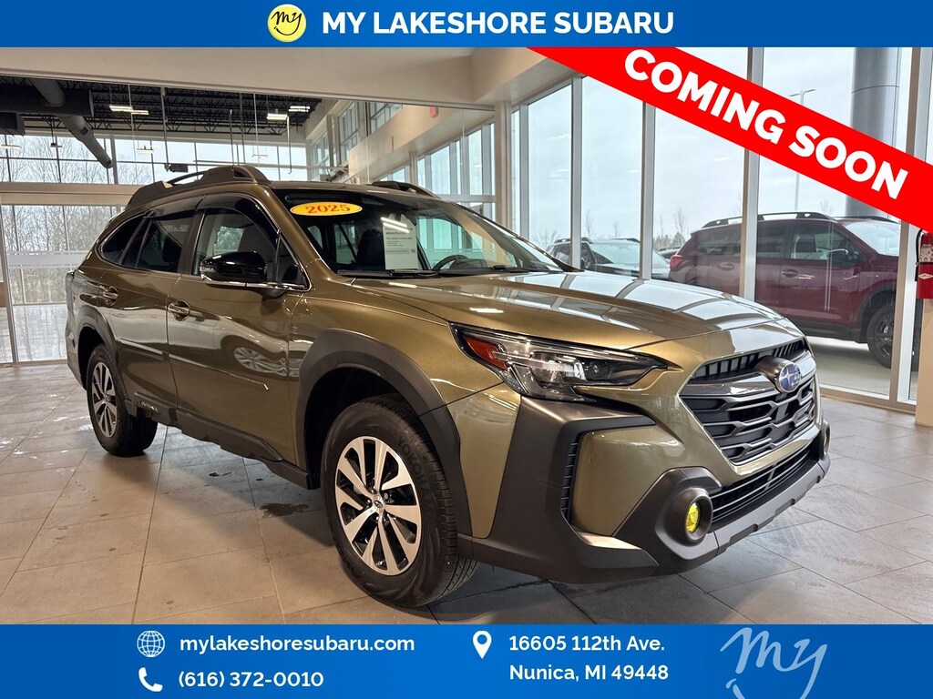 Outback Premium, Autumn Green Metallic, *ALL WHEEL DRIVE*, *APPLE CARPLAY & ANDROID AUTO*, *BACKUP CAMERA*, *BLIND SPOT MONITORING*, *EYESIGHT Driver Assist*, *HEATED STEERING WHEEL*, *LANE DEPARTURE WARNING*, *LEATHER HEATED POWER SEATS*, *MOONROOF*, *OIL CHANGES for LIFE*, *PREMIUM SOUND*, Blind Spot Detection (BSD), BSD w/RCTA & Keyless Access & Push Button Start, Hands-Free Power Rear Gate, Keyless Access w/Push Button Start, Rear Cross Traffic Alert (RCTA). Certified. Autumn Green Metallic 2025 Subaru Outback Premium AWD CVT Lineartronic 2.5L 4-Cylinder DOHC 16V