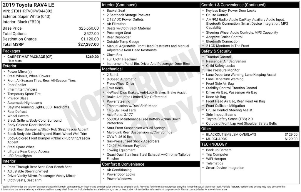 RAV4 LE, Super White, *ADAPTIVE CRUISE*, *BACKUP CAMERA*, *LANE DEPARTURE WARNING*, *LOCAL TRADE*. Super White 2019 Toyota RAV4 LE FWD 8-Speed Automatic 2.5L 4-Cylinder DOHC Dual VVT-i