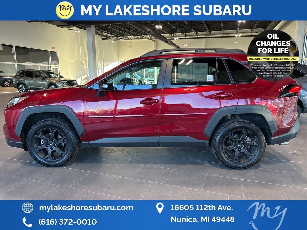 RAV4 TRD Off Road, AWD, Black w/SofTex TRD Off Road Seat Trim, *ALL WHEEL DRIVE*, *APPLE CARPLAY & ANDROID AUTO*, *BACKUP CAMERA*, *LEATHER HEATED POWER SEATS*, *LOCAL TRADE*, *OIL CHANGES for LIFE*. Ruby Flare Pearl 2022 Toyota RAV4 TRD Off Road AWD 8-Speed Automatic 2.5L 4-Cylinder DOHC Dual VVT-i